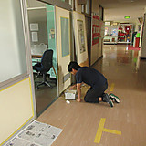 教室 廊下側のドアのペンキ塗り